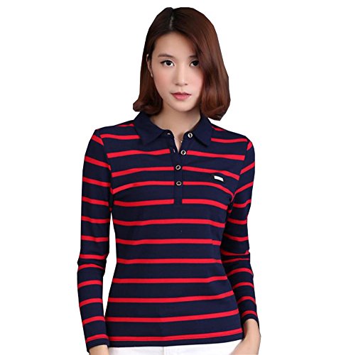 -. Title : FEVON ポロシャツ レディース 長袖 春 秋 冬 Tシャツ 折り襟 ボーダー柄 スキッパー トップス カットソー スポーツウェア ゴルフウェア カジュアル スリム 作業服 事務服 大きいサイズ