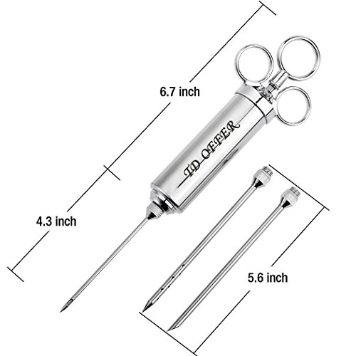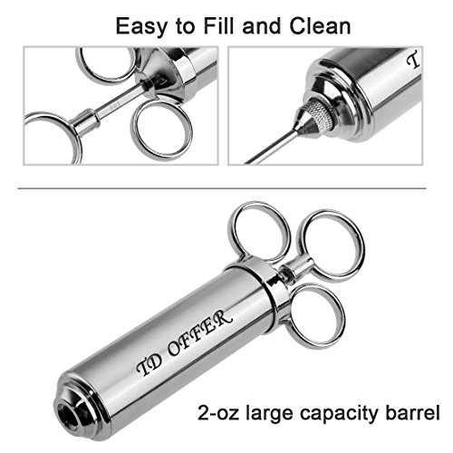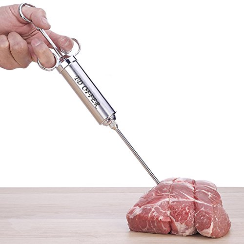 - TD offer 's meat injector is perfect for deep marinating of brisket, pork, chicken, turkey, lamb, goose, duck, and more! The needles are sharp and they can puncture the toughest cuts of meat. The injector is 100% FOOD-SAFE and the high grade stainless steel ensures no clog, bend or break.