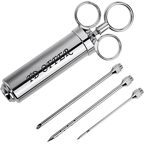 Meat Injector marinade 304 Stainless Steel 2-oz Large Capacity Barrel and 3 Marinade Needles