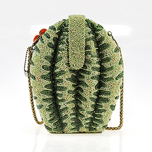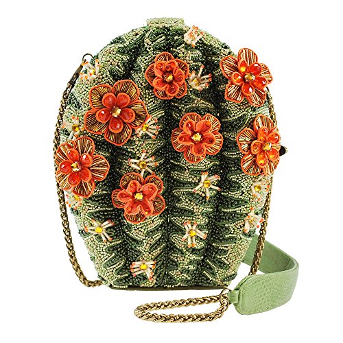NAME Cactus Flower Handbag SKU BAG 16-181 DIMENSIONS (L X D X H) 6.5 x 2.75 x 8 DESCRIPTION We've captured the beauty of the desert in this stunningly beaded cactus bag featuring hand crafted vibrant orange blooms. FEATURES Hand crafted 3D beaded flowers, removable padded-shoulder chain strap, 1 interior slip pocket, magnet flap closure, fits a cell phone COLOR Green STRAP Removable STRAP LENGTH END TO END 37.5 STRAP DROP LENGTH 18 CLOSURE Magnet