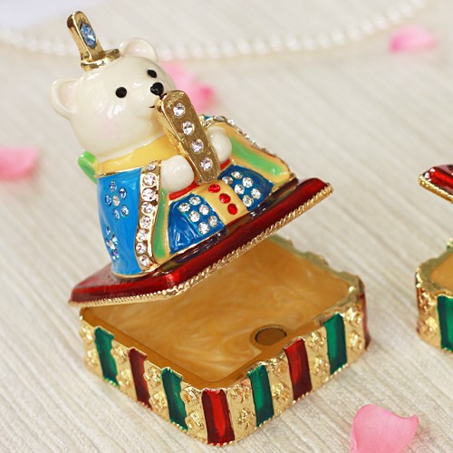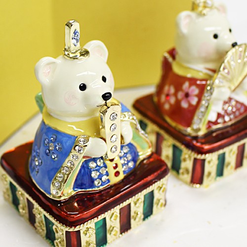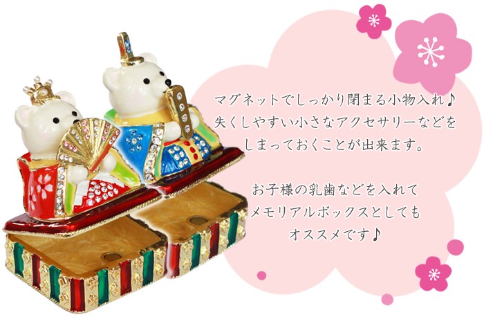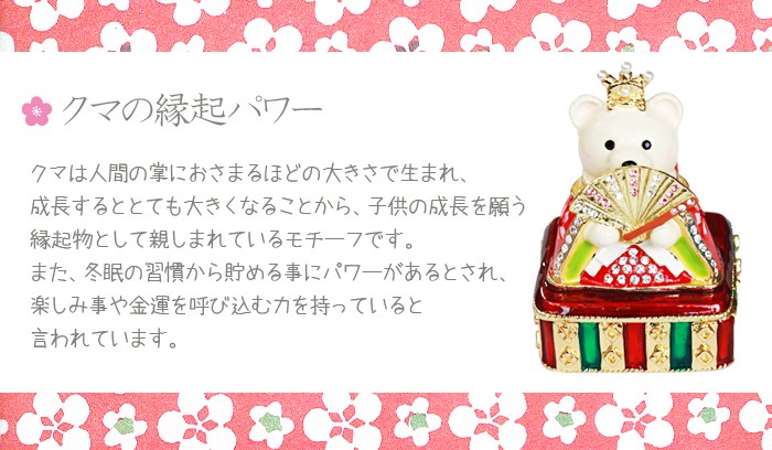 | ジュエリーボックスと言えば、指輪やピアス、ネックレスなどのアクセサリーを入れる引き出し型のケースを思い浮かべる方が多いかもしれません。 ピィアースのジュエリーボックスは、動物や花などをモチーフに作られ、合金製でずっしりとした重さがあります。また高品質のクリスタルガラスを贅沢に使用。まるでジュエリーボックスそのものが宝石のような、高級感溢れる仕上がりです。 小物入れとしても使えるように開閉口には磁石が取り付けてあり、アクセサリーなどなくしやすいアイテムの収納ができます。キラキラと美しく輝く宝石箱は、そのまま飾って楽しめるインテリア雑貨として多くの方に愛されています。 国内トップクラスのジュエリーボックスメーカーであるピィアースは、2004年ごろから本格的に宝石箱の製造を始め、現在のジュエリーボックスはなんと300種類以上。大規模展示会でもご好評いただいており、全国有名百貨店でも販売されています。 自社工場でひとつひとつ丁寧に手作りし、原型作成、研磨、加工、着色、小さなクリスタルガラスの取り付けなども全て手作業で行われるこだわりのハンドメイド品。完成後は厳しい検品の後、丁寧に梱包作業をしお客様にお届けしております。 ピィアース商品は、全国有名百貨店および全国有名宝石店チェーンにてお取り扱いいただいている高品質商品です。 ★自分へのご褒美に…コレクションして並べて飾ると、さらにかわいらしさUP! ★恋人へのプレゼント…中にアクセサリーを入れて、サプライズな贈り物として ★家族への感謝ギフト…お母さんや姉妹へ、日頃のありがとうの気持ちを込めて ★誕生日プレゼント…お友達の喜ぶ顔が見たいから、いつもと違うキラキラギフトを ★小さな女の子へ…まるでお姫様が使っているようなキラキラ宝石箱は女の子の憧れ! |