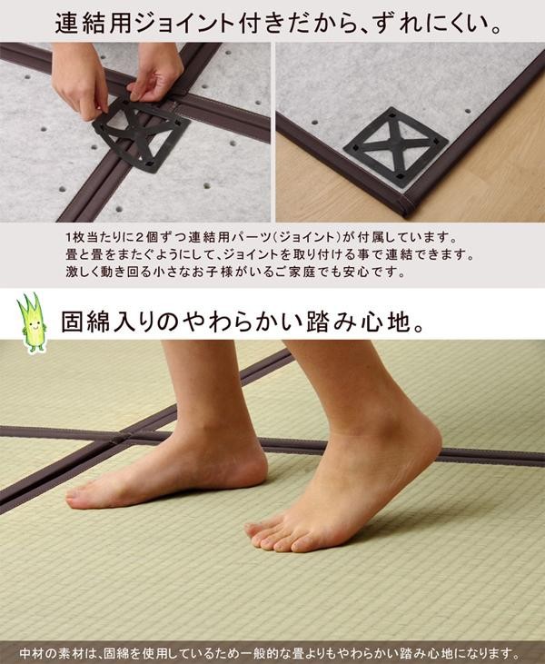 fk094igrjsユニット畳のセットです床に置くだけで和のスペースが出来上がります サイズ 約82×82cm 個装サイズ:83×83×12cm 重量 個装重量:10400g 素材・材質 表地:い草 中材:固綿15mm 付属品 連結用ジョイント×12 生産国 日本 軽量タイプで簡単設置 ユニット畳のセットです床に置くだけで和のスペースが出来上がります