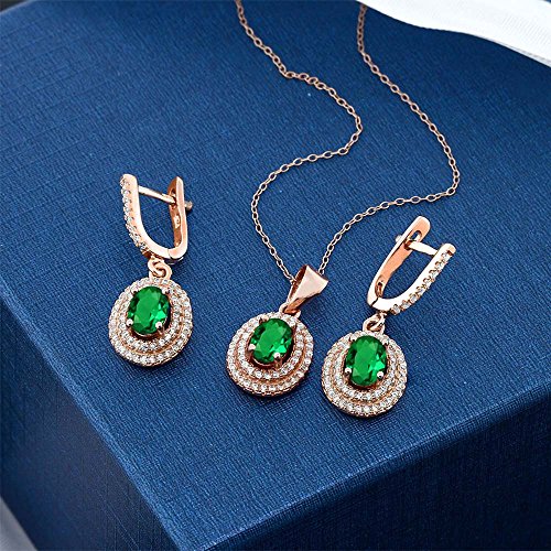 -. Title : 3.43 Ct Green Nano Emerald 925 Rose Gold Plated Silver Pendant Earrings Set