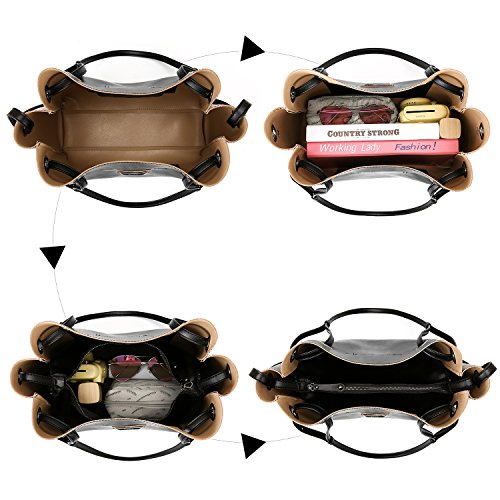 - 2pcs sets: 1 fashionable large tote bag and 1 removable shoulder/crossbody purse with zipper closure. The inner bag can be took out as a single shoulder bag. The large bag has 2 inner slip pockets perfectly for your phone and wallet.