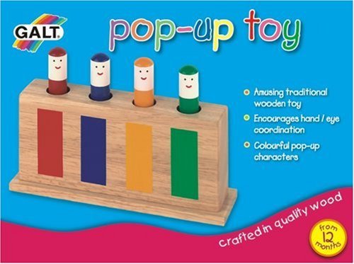 -. Binding : Toy -. Brand : Galt America -. Color : multicolored -. Department : baby-toys -. EAN : 1144177122093 -. Feature : Quality controlled to meet the highest standard / Galt products are rigorously tested against toy safety regulations / The pop up toy is an amusing toy / With 4 colorful figures which bob up and down on concealed sP.R.Ings / Designed to encourage hand/eye coordination and introduce color awareness -. IsAdultProduct : 0 -. IsAutographed : 0 -. IsMemorabilia : 0 -. Label : Galt -. Manufacturer : Galt -. Model : A0138L -. MPN : GA0138L -. NumberOfItems : 1 -. PackageQuantity : 1 -. PartNumber : GA0138L -. ProductGroup : Toy -. ProductTypeName : TOYS_AND_GAMES -. Publisher : Galt -. ReleaseDate : 2009-09-01 -. Studio : Galt -. Title : Galt Toys Wooden Retro Pop Up Toy -. UPC : 783329453763 -. Warranty : One year for defects in manufacture.