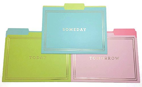 -. Feature : Today, Tomorrow, Someday / 9 Count File Folders / Pastel Pink, Blue, Green / Gold Lettering