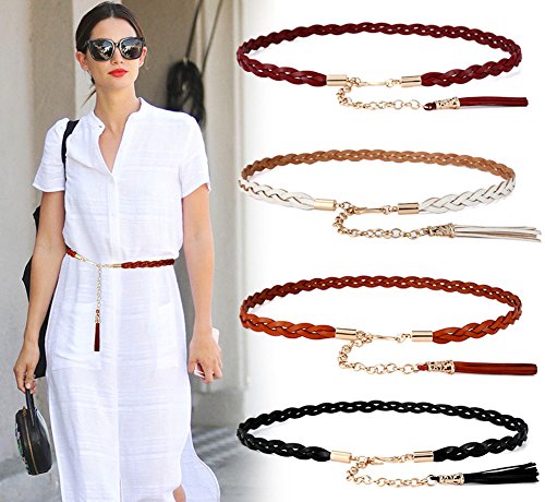 Product DescriptionAecibzo Womens Braided Thin Belt Skinny Waist Belt For Dress Waist Chain Belt