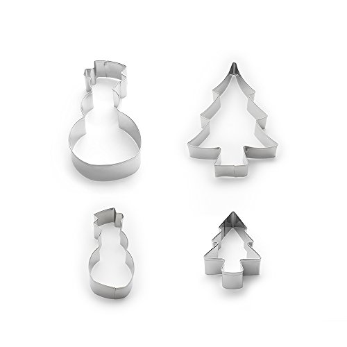 The Culinary Junction Stainless Steel Xmas Tree and Snowman Cookie Cutter Set, Complete with 1 Small and 1 Large Snowman and Christmas Tree Stainless Steel Cookie Cutters (4 Total)