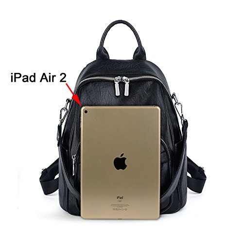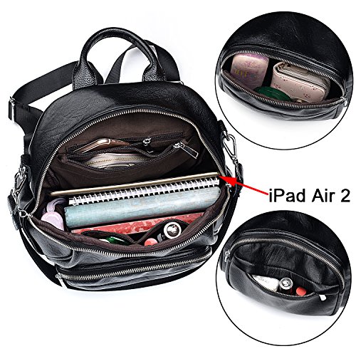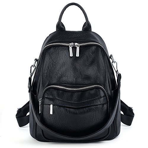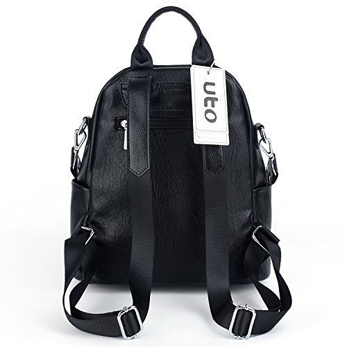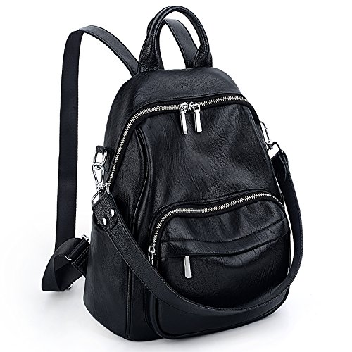 UTO Women Backpack Real Leather Handle Straps Convertible Ladies Rucksack Shoulder Bag Black