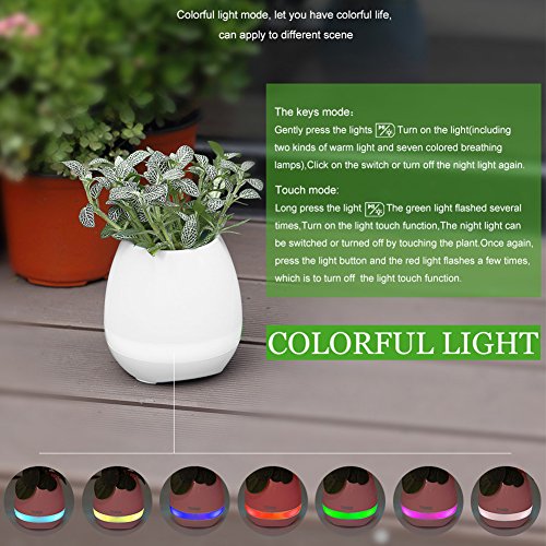 Studio : yimai Publisher : yimai Binding : Kitchen Product Description It's a 4-in-1 magic flowerpot, you can plant any plants you like, making a wonderful piano sound by touching the real plant. What's more, it can also be a wireless bluetooth speaker and a colourful night light to wake and bright up your worklife and homelife.