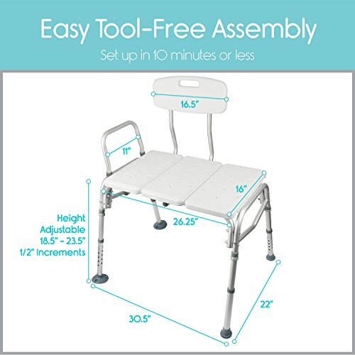 Tub Transfer Bench by Vive - Bath & Shower Transfer Bench - Adjustable...