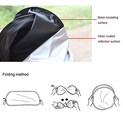 Window Shades for Car,2win2buy Folding 59" X 27" Windshield Sun Shade Black Silver Tone for Car Auto One Piece, Pop-up Design Car Sunshade. Reflective Silver Nylon Car Windshield Sunshade. Sun Blocker for Front Windscreen.