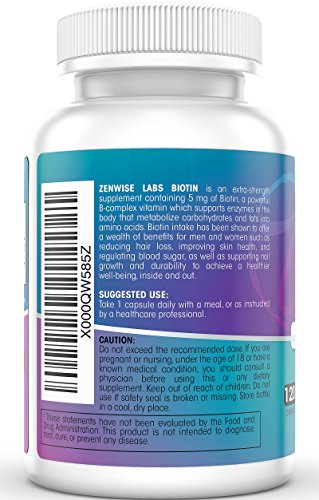 -. Feature : Want to Know What Biotin Is All About? - Zenwise Health's Extra Strength Biotin are powerful health supplements loaded with 5000 mcg of Biotin to help boost the overall wellness of the body, from the inside out. This unique B-Complex vitamin has been shown to support the enzymes in the body by metabolizing fats and carbohydrates into amino acids, as well as enhancing the skin, hair and nails. / Biotin for Hair Growth as well as Improved Skin & Nails: Our specialized formula awards the body with a healthier appearance by helping to reduce hair loss and improve the tone and texture of the skin. Contains nutrients that can thicken nail bed and aid in preventing future breakage from occuring. / Have Healthier Looking Skin & Nails - Our specialized formula awards the body with a visibly healthier appearance by improving the tone, texture and overall health of the skin. Biotin (Vitamin B7) is rich with nutrients that can also help strengthen brittle nail beds to prevent future breakage from occurring. / Ultimate Energy Booster & Cardiovascular Supporter - When it comes to benefits, Biotin doesn't just stop at the surface! It is also an energy-boosting metabolism enhancer that can help reduce fatigue and slishness, as well as a great heart-supporting supplement by managing blood sugar levels in the body to keep you in tip-top shape. / A Supplement You Can Trust - Zenwise Health proudly formulates this Biotin Softgel supplement in an FDA-registered facility that is NSF and GMP certified, and all products are manufactured in the USA.