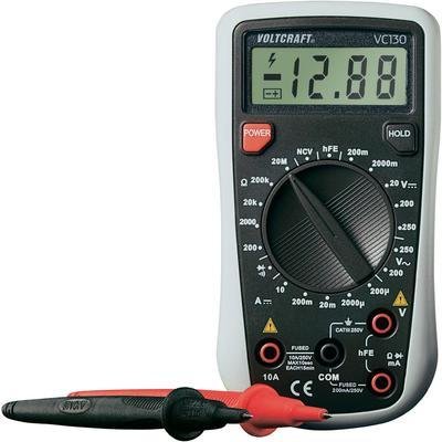 -. Feature : Standardmessbereiche V/DC, V/AC, A/DC, Widerstand, akust. Durchgangsprüfer, Diodentest, berührungsloser AC-Spannungsprüfer, hFE-Transistortest (mit optionalem Adapter), Hold-Funktion, Low-Batt-Anzeige, robustes Gehäuse mit Weichgummischutz. / Anzeige 2000 Counts, Messbereich V/DC: 0.1 mV - 250 V, Messbereich V/AC: 0,1 V à 250 V, Messbereich A/DC: 0.1 µA - 10 A, Messbereich Widerstand: 0.1 Ω - 20 MΩ, Überspannungskategorie: CAT III 250 V, Grundgenauigkeit: ±0.5 % / Spannungsversorgung 9 V Block, Abm. (B x H x T) 72 x 137 x 35 mm, Gewicht 200 g, Kalibrierbar nach ISO / DKD / Lieferumfang: Messleitungen, 9 V Batterie, Bedienungsanleitung