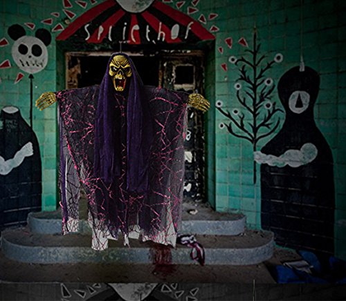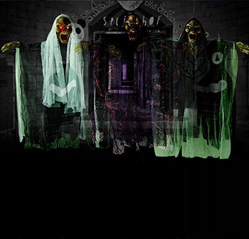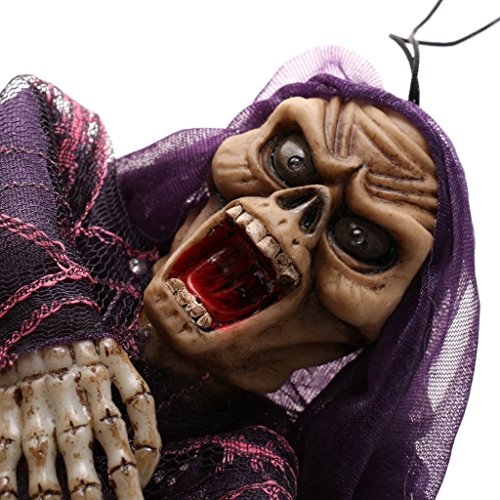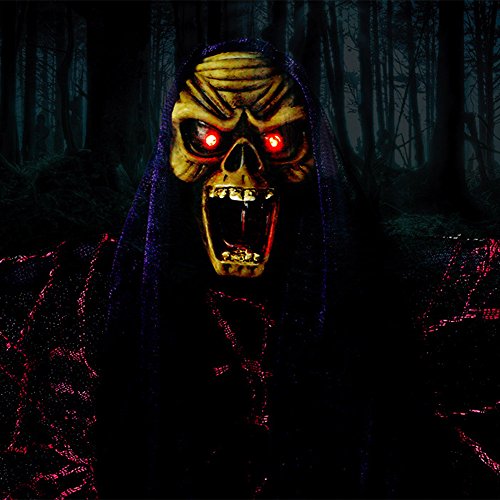 REAK Hanging Ghost Halloween Decorations Novelty Halloween Hanging Decorations Electric Scary Skeleton Ghost Witch with Sound and Flashing Eyes for Haunted House, Party, Horror Theme Bar, 18 inch