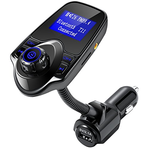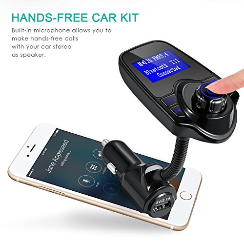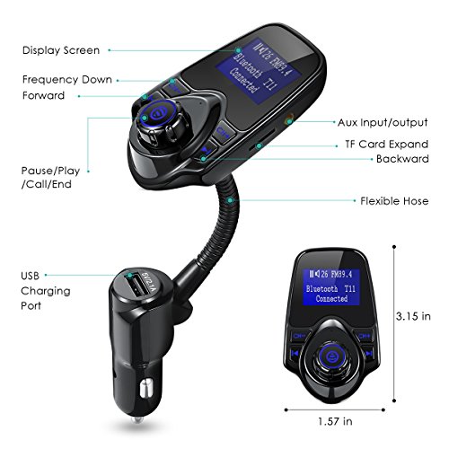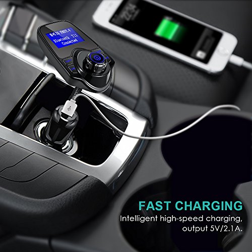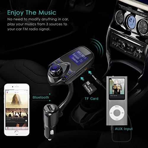 FM Transmitter, Oria Bluetooth Wireless In-Car Radio Adapter Car Kit, Audio Receiver with 1.44 Inch Display, USB Charger & Hands Free Calling for Smartphones, Tablets, TF Card, MP3 and etc
