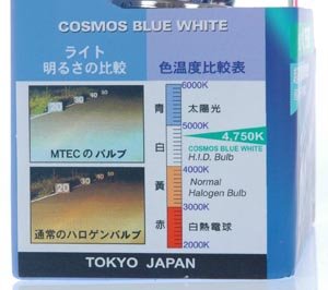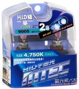 MTEC Cosmos Blue 9005 Bulbs are long lasting halogens with a deep blue High Intensity Discharge (HID) color! MTEC bulbs are high quality Japanese bulbs with an unbeatable price. Stock wattage Cosmos Blue MTEC bulbs look cool, and stay cool so you can safely upgrade your vehicle's lighting. MTEC Cosmos Blue Headlight Bulbs feature a 4750K color temperature, with a blue HID like output. The bulbs feature a metallic blue coating, and illuminate the road with a blue tint similar to the xenon lights on newer luxury sedans. Did You Know? Halogen bulb color temperature is not related to heat temperature, and is used only to identify the color output of the bulbs. MTEC Cosmos blue bulbs have a stock wattage draw. This means they draw the exact same amount of power as your factory bulbs. MTEC 9005 Cosmos Blue bulbs don't increase wattage or heat so you can safely upgrade your vehicle's headlight bulbs.