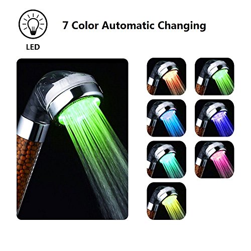 7 Color Changing LED Handheld Shower Head Bathroom Spa Shower Head with Negative Ionic Sprinkler and Chlorine Double Filter Saving Water