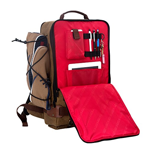 -. Feature : Folded concealed tote bag / Opens to multiple compartments / Accommodates up to a 17 laptop sleeve / Top and side carrying handle / 12x5.5x19.5 / Folded concealed tote bag