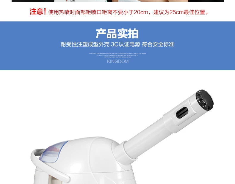 E, will cover herbal spray tube inserted back into the cover of the machine, turn the heat fog switch three minutes or so, it will have a thermal spray mist from the mouth spray, then also enjoy aromatherapy herbal cosmetic or beauty at the same time.