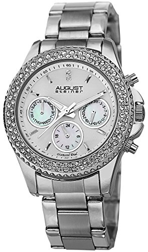 -. Title : August Steiner Women's AS8100SS Swiss Quartz Multifunction Diamond & Crystal Silver-tone Bracelet Watch