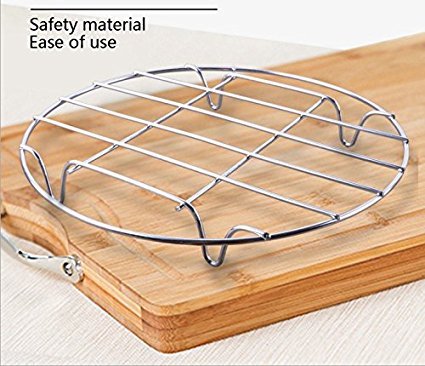 ICASA Cooling Rack is the perfect addition to baking supplies for many baking, roasting, cooling and food preparation tasks.? - It's perfectly sized and shaped for cooling cookies, pies, and cakes, and elevates foods, baking dishes and pans for better heat circulation so they cook evenly. - Use in a roasting pan for making oven roasted vegetables, butternut squash, baked potatoes, even crispy bacon.? - It lifts baked goods and bakeware above countertops for better airflow and faster cooling times.? - Makes a great workspace for finishing foods, like decorating cookies, cupcakes, and so much more. - Made from heavyweight chrome wire for durability, it's oven safe to 500-degrees Fahrenheit, won't scratch surfaces and resists rust. - Its footed base adds stability during use.? - Hand wash in warm, soapy water. Material:?304 Stainless Steel? Package Content:?2 x Steaming Rack 0 |