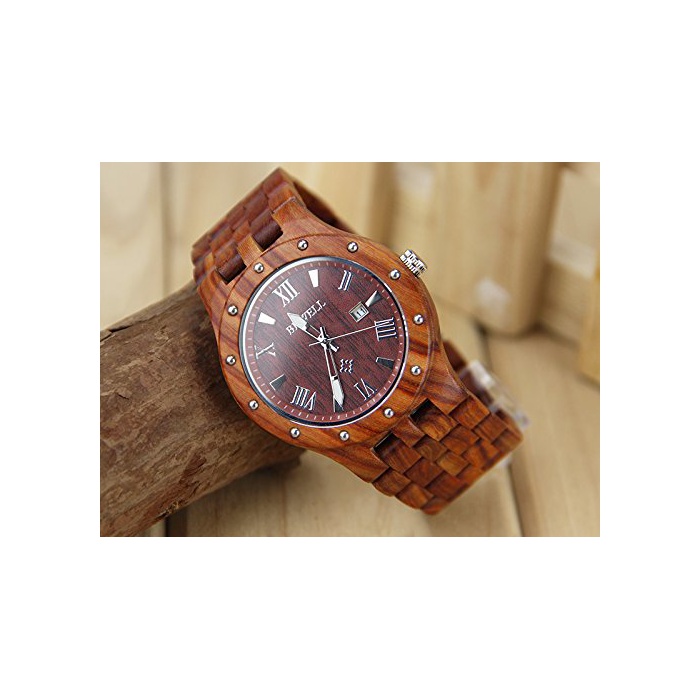 R-timer 목제 손목시계 우드 손목시계 맨즈 아날로그 손목시계 천연목 캘린더 부착 다침아날로그 표시 야광 생활 방수 기능 조각 아버지의 날 손목시계 선물 선물 (빨강단+흑단)