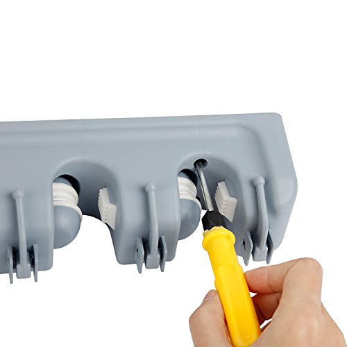 -. Feature : IINDOORS & OUTDOORS: Put it into use in garage, garden, kitchen, laundry room, offices and anywhere you want. Help you solve so many past problems. / EASY to INSTALL: Only need several mintues to finish, 6 screws 6 anchor, fast and efficient. / NO-SLIDE TECHNOLOGY: ABS engineering plastic chuck design, firmly stuck mop, do not hurt the mop, 50 pound hanger capacity, to ensure strong and sturdy holding. / MUTIFUCTIONAL HELPER: 5 ball slots 6 hooks, ball automatically adjust the thickness of the handle, almost 11 clean facilities can be placed, you can also use to place racquets, umbrellas, anything you want. / MAKE LIFE BETTER: Quick and easy to reaction your broom in which postion. Hanging mop, sweep, no smell and clean.