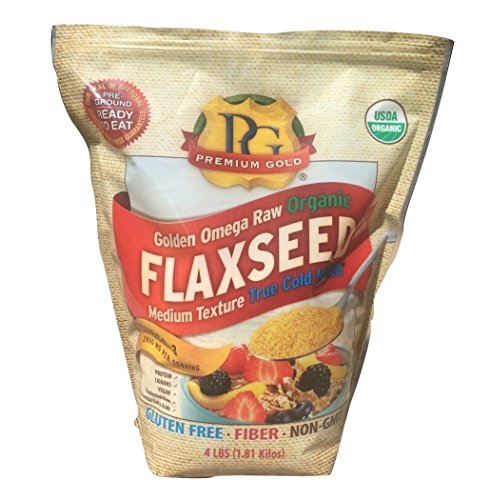 Premium Gold 100% Natural Organic Flax Cold Milled Ground Golden Flax Seed, 4-lbs Pack