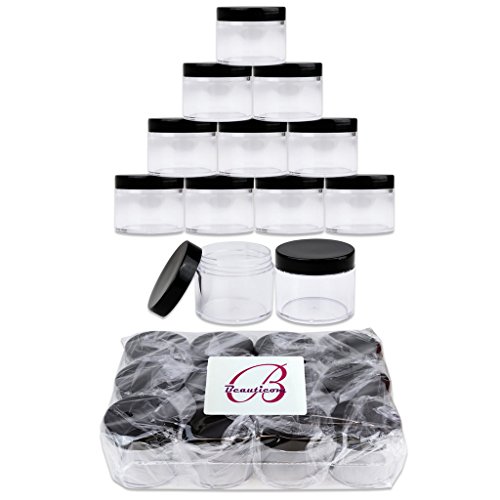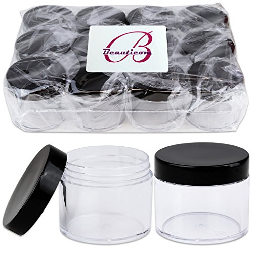 Product DescriptionBeauticom® High-Grade Quality 2 oz./ 60 Grams/ 60 ML (Quantity: 384 Packs) Thick Wall Crystal Clear Plastic Jars Container with BLACK Lids for Cosmetic, Lip Balm, Lip Gloss, Creams, Lotions, Liquids, Glitter, Charms, Nails - LEAK-PROOF JARS!!0
