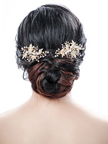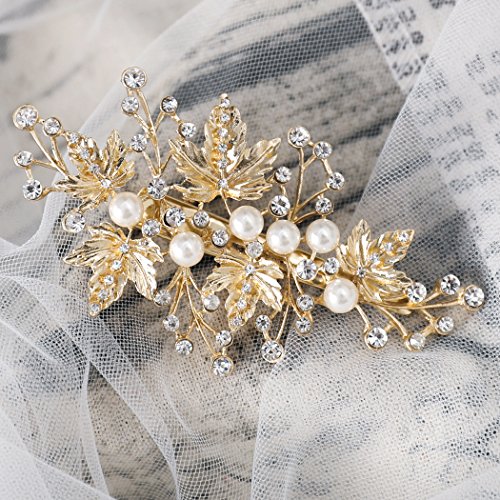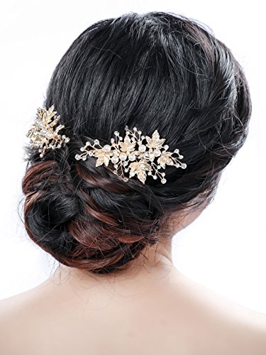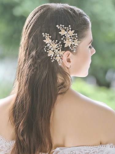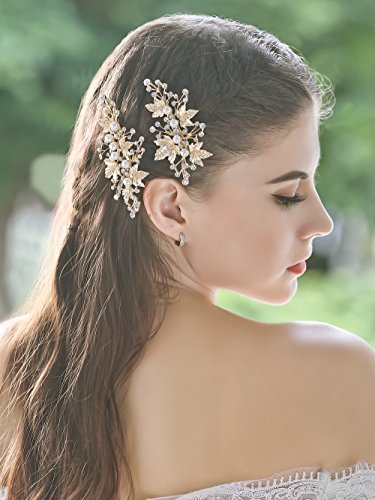 Bridalvenus Gold Bridal Hair Pins Set, Wedding Leaf Hair Pin Hair Clips for Women and Girls (Set of 2)