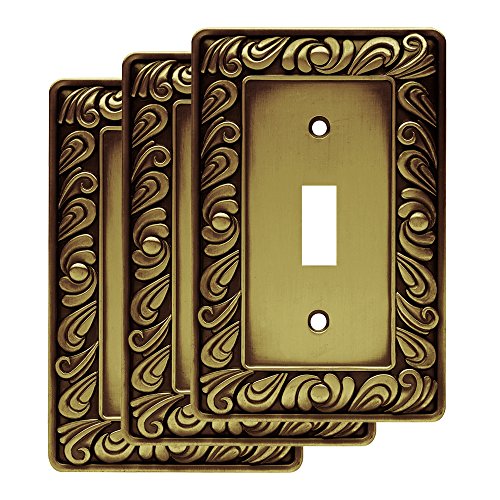 Franklin Brass W10108V-ABT-R Paisley Single Toggle Switch Wall Plate, Tumbled Antique Brass, Pack of 3