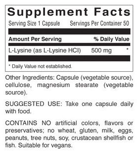 -. Title : Natural Nutra L-Lysine, 50 Capsules, 500 mg