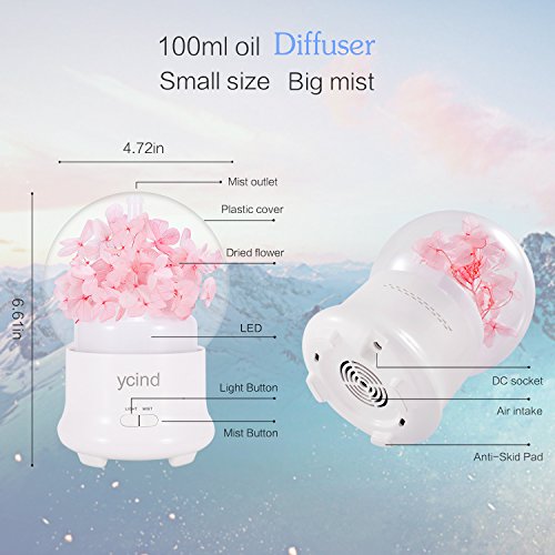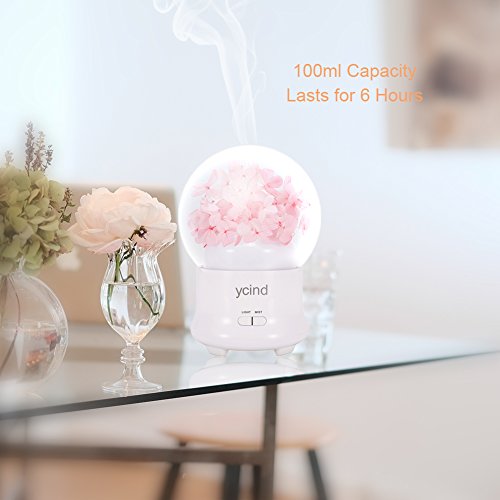 YCIND Essential Oil Diffuser Ultrasonic Diffuser Baby Aroma Humidifier Adjustable Cool Mist Mode 3/6 Hours 100ml with 7 LED Color Lights(Pink)