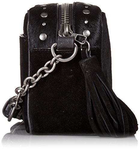 -. Feature : • 100% genuine leather • polyester lining • 7 w x 5 h x 3 d • 21" strap• adjustable strap• zip closure• round stud detail• tassel• hair calf• main compartment with slip pocket