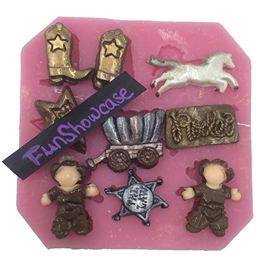 Funshowcase Mini Wild West Cowboy Theme Silicone Candy Mold, for Cake Cupcake Decorating, Crafting, Polymer Clay, Resin