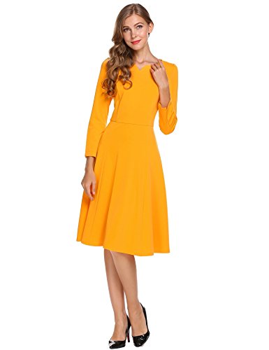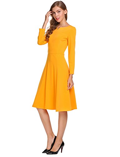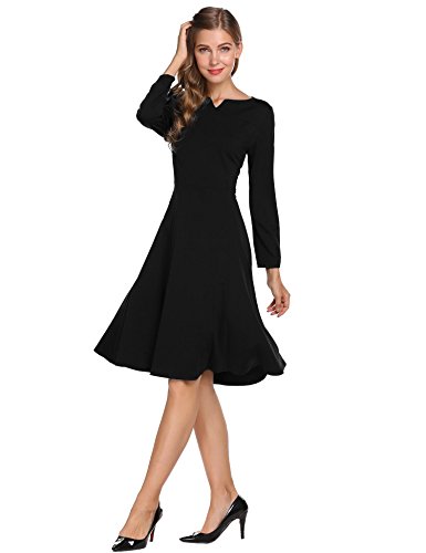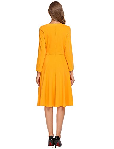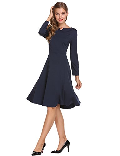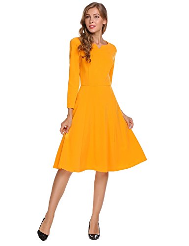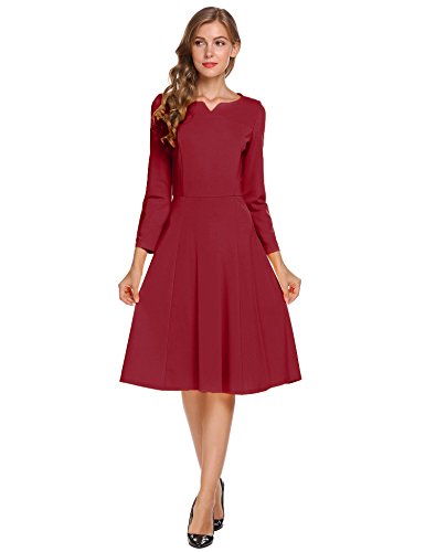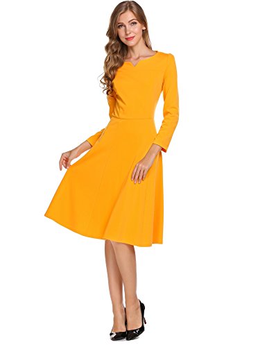 Burlady Women's Classy Notched Neck 3/4 Sleeve Fit Flarel Office Business Long Tea Midi Swing Dress