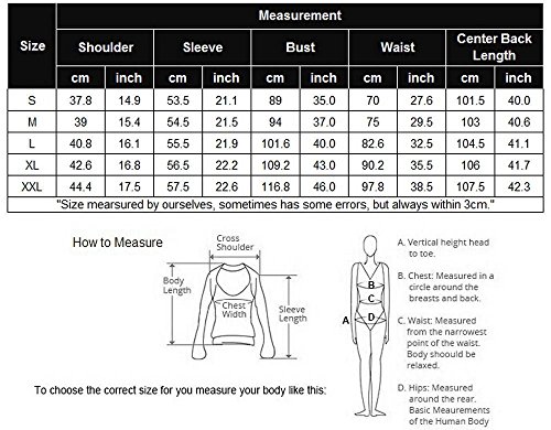 sizes (S, M, L, XL, XXL) available for the following listing. please allow 1-2cm differs due to manual measurement, thanks (All measurement in cm and please note 1cm=0.3937inch)