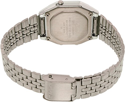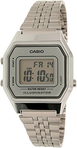 Brand, Seller, or Collection Name:Casio Model number:EAW-LA-680WA-7DF Part Number:LA-680WA-7 Model Year:2013 Item Shape:rectangle Dial window material type:Mineral Display Type:Digital Clasp:Jewelry Clasp Case material:Stainless steel Case diameter:29 millimeters Case Thickness:8 millimeters Band Material:Stainless steel Band length:Women's Standard Band width:12 millimeters Band Color:Silver Dial color:Silver Bezel material:Stainless steel Calendar:Day and date Special features:Light, Lap timer, measures-seconds Movement:Quartz Water resistant depth:30 Meters
