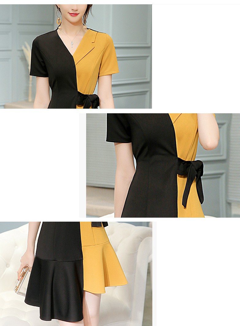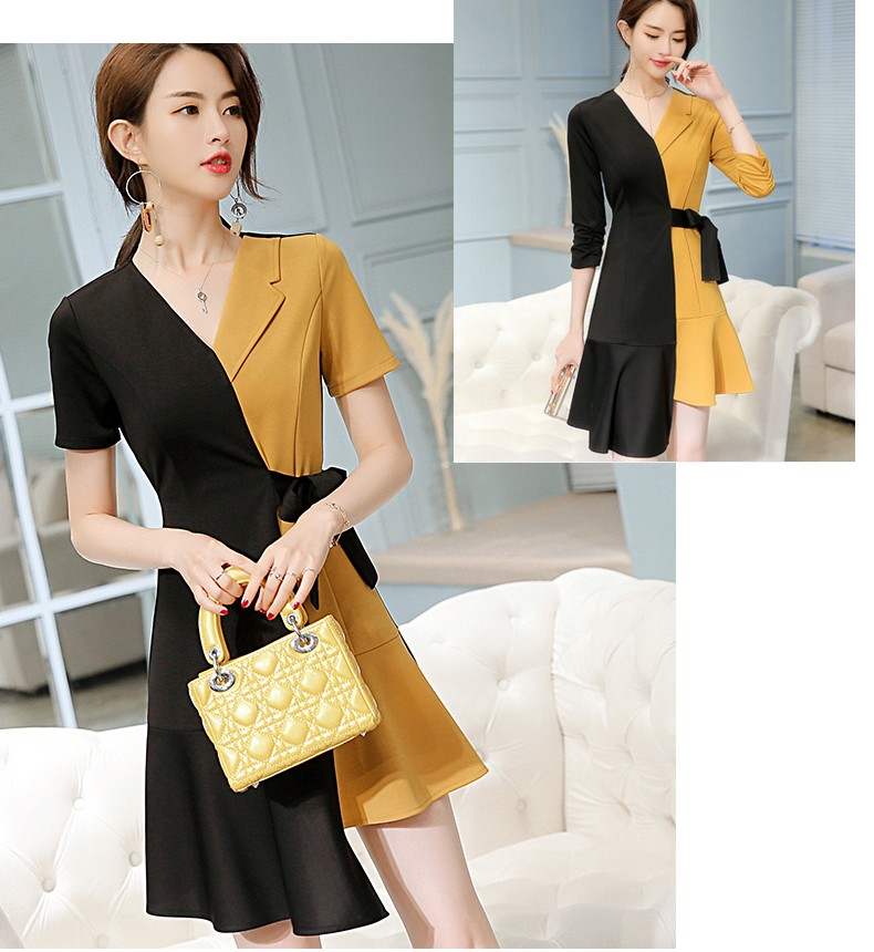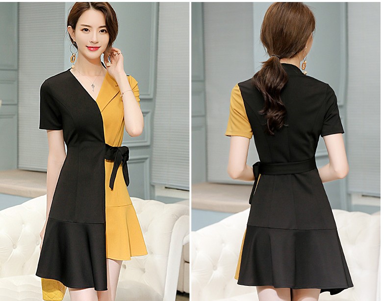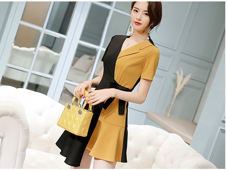 右がブラック左がマスタードのカラーブロッキングデザインワンピース♪
