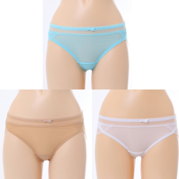 홀이 크고 시원한 메쉬원단에 허리와 다리에 소폭레이스를 매치하여 심플하지만 젊은 감각의 세련된 삼각스타일 팬티입니다