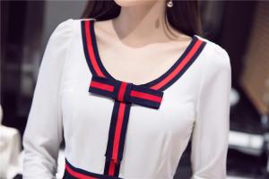 タイトワンピース フィット リボン レトロ 上品 大人 レディ プチプラ ハイウエスト 長袖 清楚 バイカラーリボン