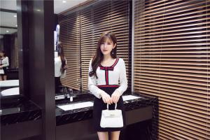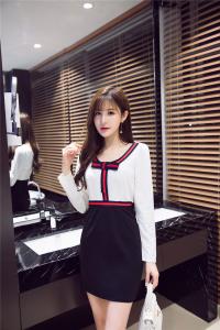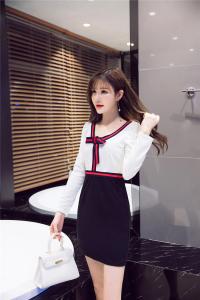 オシャレなバイカラーリボンがポイントにタイトワンピース♪