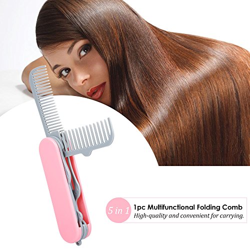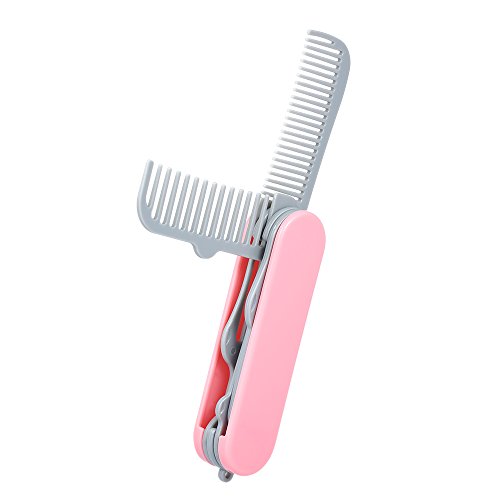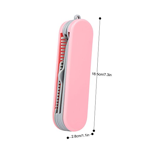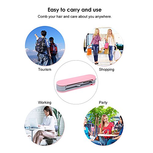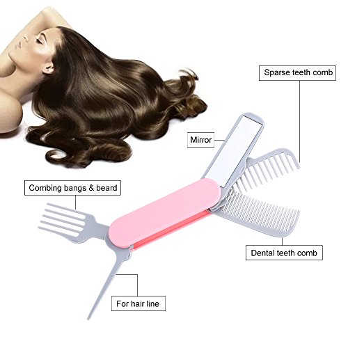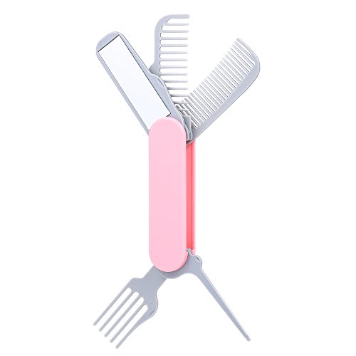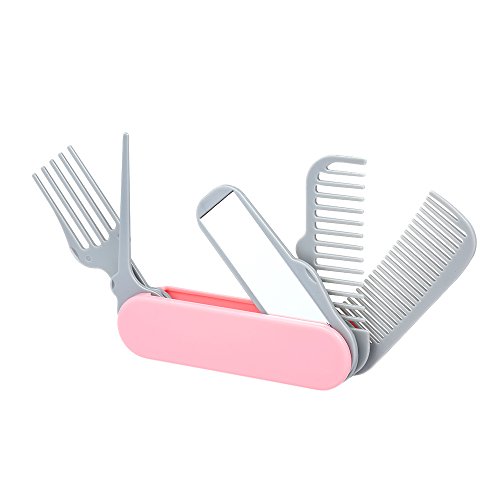Anself Folding Hair Comb with Brush Mirror Portable Travel Knife Shape Hair Comb Pink