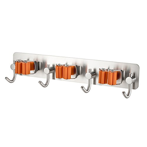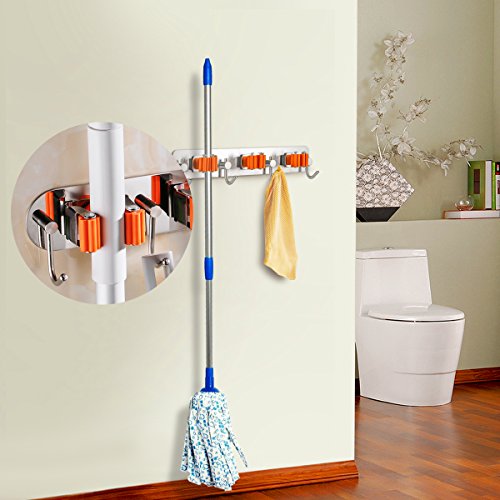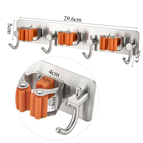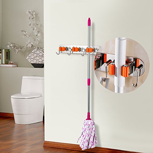 Studio : Bosszi Publisher : Bosszi Product Description ★ Description:★ ☆Stylish design of the wall-mounted mop broom frame for beautify your living space and create a warm, warm environment. ☆Broom storage stay like magic,you can easily place or remove your items. ☆Hooks can place dustpans or rags. ☆Mop organizer holder would be fantastic in your garage to hold shovels and rakes as well. A clean and neat world you'll have!!! ★Specifications :★ ☆Material: stainless steel and silicone ☆Size: Length 29.6CM, high about 4.5CM, width 5CM ★Installation Notes: ★ 1. Keep the sticky surface clean and dry, blow the surface with a hair dryer 2. Remove the protective film from the rack and paste it 3. Place the suspended grouts in the desired position. 4. Suggested 24 hours after the use of hanging objects★Package includes:★☆ 1 x Adhesive mop holder with 4 hooks.