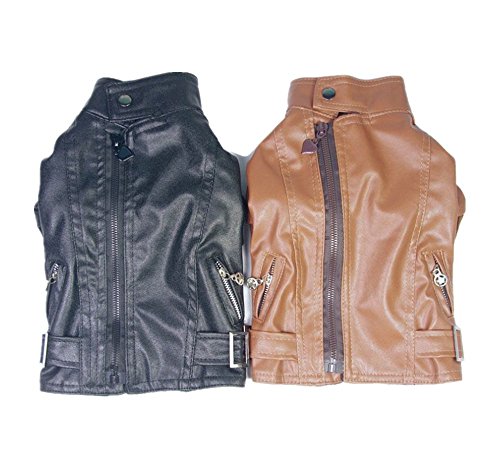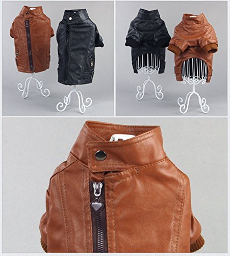 -. Title : Zerotone 1pc Leather Zipped Jacket Coat Outwear for Small Pet Dog Cat 2 Colors XS-L