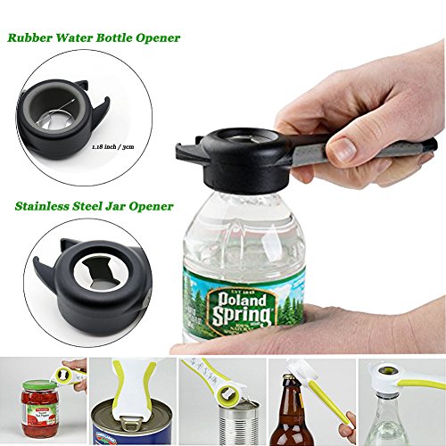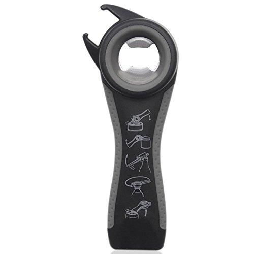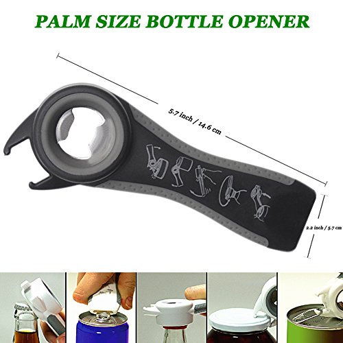 -. Feature : 5 in 1 Bottle Opener: It can open most kinds of bottles, cans and jars with tabs, as well as loosing lids for old grandma, grandpa or someone who had hand physic problems / Simple Open Work: Open every lid,pull tab can opener, soda cans, bottle twist off or a jar that cannot be opened, this nifty multi bottle opener helps you very much / Useful Kitchen Tools: No struggling to open bottles anymore, every household should have one to open the vacuum sealed sauce jar lids / Durable Ergonomic Design: Made of frictional rubber inside the bottle opener hole, more durable and easier to open bottles; An anti-slip rubber handle to improve its grip to open every jars / Great small gadget: Open anything you want, it will be a perfect gift to your grandma, grandpa,mum, wife, kids or arthritis friends who always need helps when open up jars and bottles