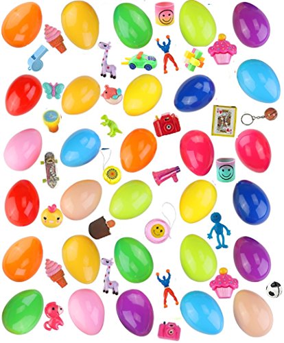 -. Feature : ⭐You don't need to spend hours filling your Easter Eggs! We've done the work for you with our 48 Toy Filled Easter Eggs. / ⭐We use our high quality 2-1/3" hinged bright color eggs and fill them with an assortment of up to 10 different toys including Race Cars, Planes, Rings, Tops, P.R.Isms, animals and more. You won't find a better assortment anywhere else! / ⭐These easter eggs and toys are safe and non-toxic materials. / ⭐Perfect for Easter hunting parties and events. Great Addition to Party Favor Bags, School Classroom Rewards, Holiday Gifts, Grab Bags, and Home P.R.Ize Box / ⭐ PERFECT PARTY FAVOR: Not only are these eggs for Easter festivities, but they can also be great party favors for your goody bags. Put a small treat inside the egg and add it to the collection of goodies for your guests