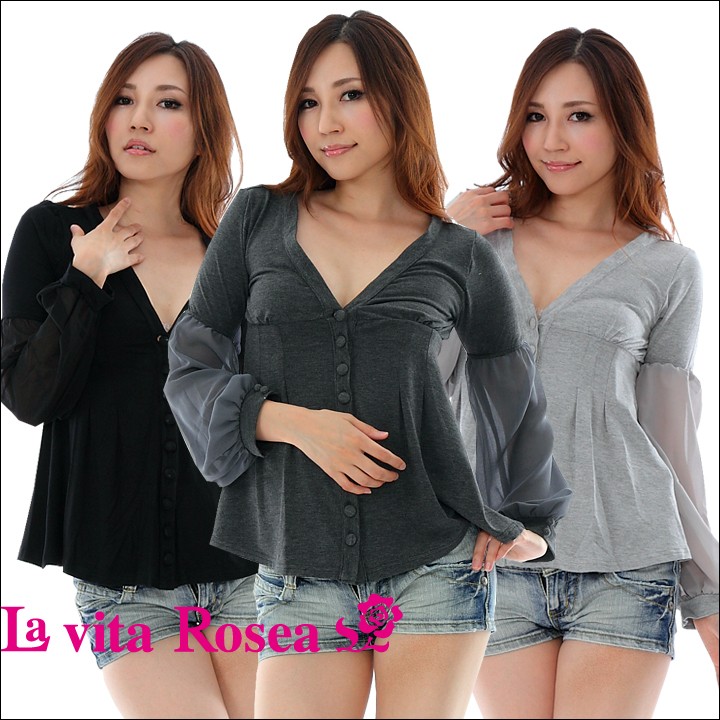 シフォンスリーブフロントボタントップス(KO) 大きいサイズ 春 セクシー レディース ギャル服 ギャル 大人 13号 15号 17号 19号 LL 2L 3L 4L 5L 6L 6L