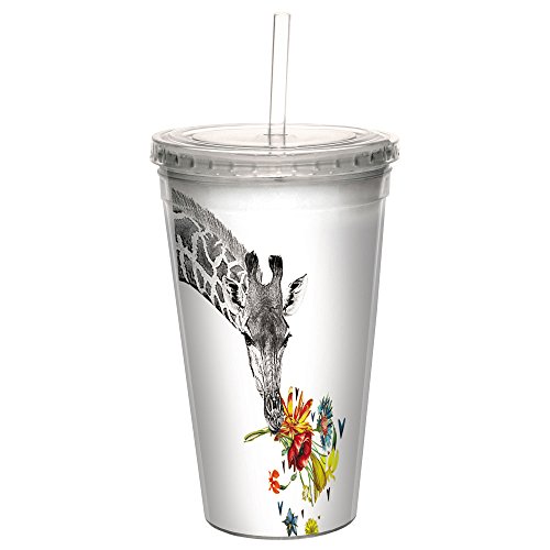Tree-Free Greetings CC98865 Artful Traveler Double-Walled Cool Cup, Checking In Giraffe